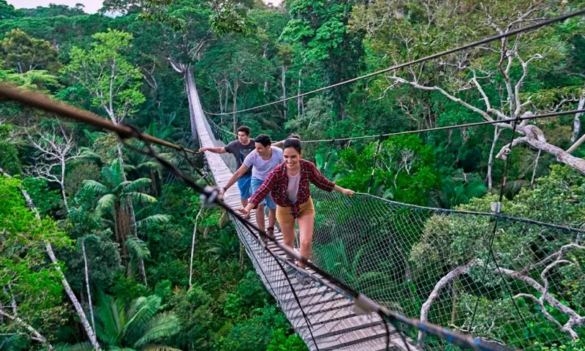 - לאחר ארוחת ההבוקר נצא לבקר במערכת הגשר התלוי הייחודי Canopy Walkaway. המפגש שלכם עם צמרות העצים מתחיל בטיפוס למגדל בגובה 29 מטר מעל עצי היער. ובהליכה של יותר מ 400 מ’ תצעדו ביער טרופי מנוקב ברשת ארוכה של גשרים תלויים. כל אחד מהגשרים מתחבר זה לזה, ובכך יוצרים 8 פלטפורמות תצפית. במהלך המסע של שעה וחצי תוכלו לצפות בטוקנים צבעוניים, נקרים, קופים ועצלנים עם שלוש אצבעות. תוכלו להישאר בטיול לצפות בשקיעה בטיפוס על אחד ממגדלי התצפית. לאחר הירידה מהגשרים התלויים תצעדו לאורך “נתיב האנאקונדה” – 200 מטר של גשרי עץ תלויים מעל ביצות אגואיילס. במערכת האקולוגית התוססת הזו, ניתן לראות מינים שונים של דו-חיים, ציפורים, יונקים, כמו גם צמחיית יער טרופי שופעת. כמו כן, תהיה לכם הזדמנות לראות מגוון נחשים שנמצאים באזור זה. צפו במצגות על הטבע במרכז האקולוגי.